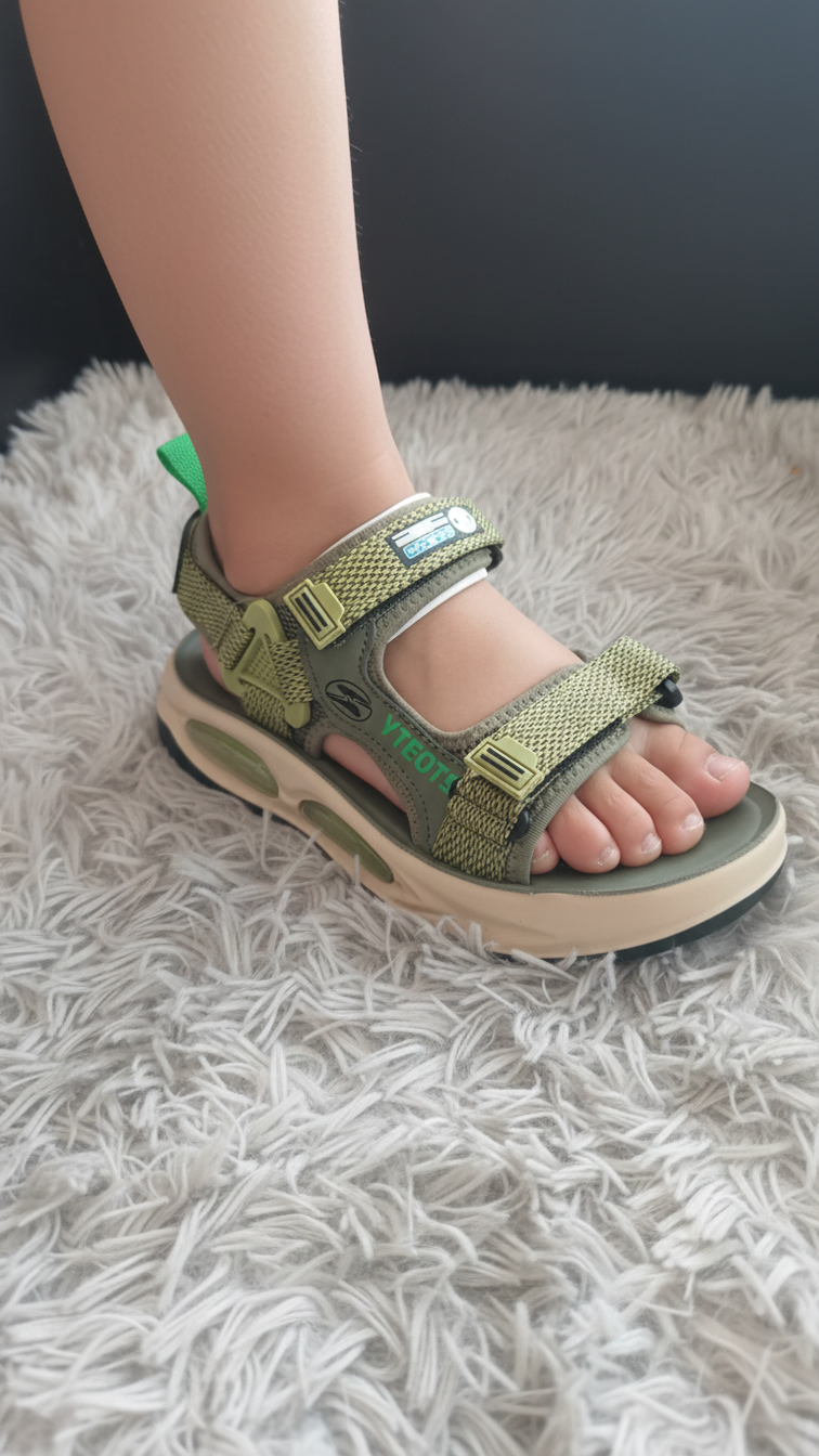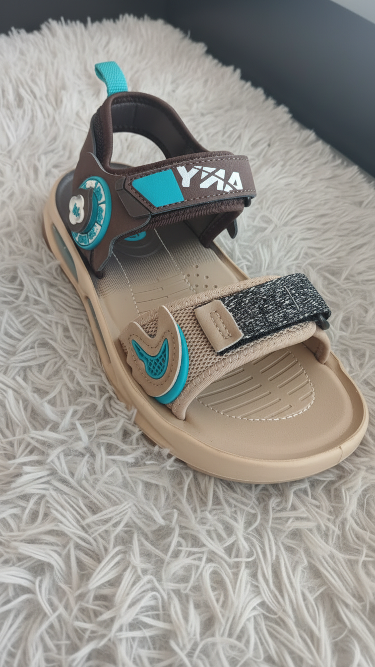A lightweight sandal with an open-toe design, featuring soft straps for a comfortable fit and a flexible sole for everyday wear.